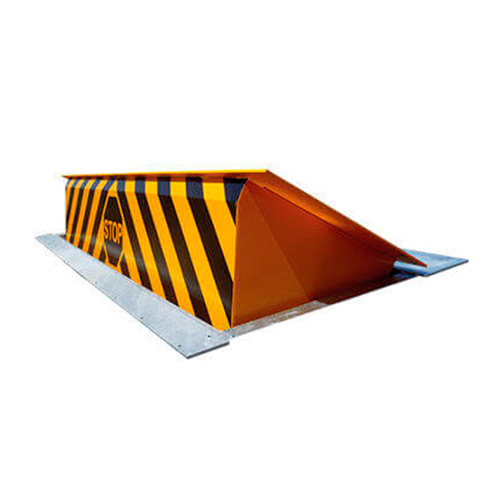 Дорожный блокиратор для проездов с максимальной шириной 4 м. Оборудован гидравлическим приводным блоком. Имеет ручной насос для поднятия или опускания. Нагрузка на ось блокиратора может составлять до 50-ти тонн.