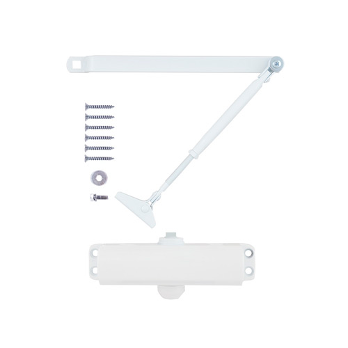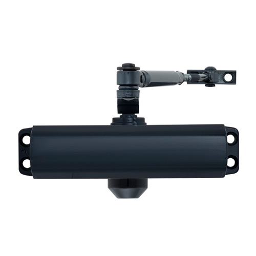 9903 STD - дверной доводчик накладного типа с локтевой тягой. Предназначен для закрытия легких внутренних и наружных дверей. Имеет раздельную регулировку скорости начального и конечного закрытия (дохлопа). Материал - алюминий, изготовленный методом литья под высоким давлением.
