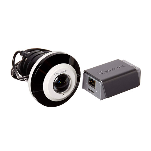 GV-UNFE2503 - сетевая видеокамера "рыбий глаз". Состоит из отдельного блока обработки видео и компактного объектива для съемки изображения. Оснащена КМОП сенсором разрешением 2 Мп. Обеспечивает панорамный обзор (180 и 360 градусов). Питание осуществляется только по сетевому кабелю (PoE).