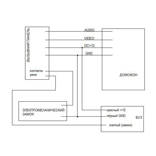 БУЗ-12 - блок управления замком, предназначенный для открытия электромеханических замков и защелок путем подачи на них короткого импульса тока (до 3 А), накопленного от видеодомофона, без использования блока питания. Имеет герметичный корпус.