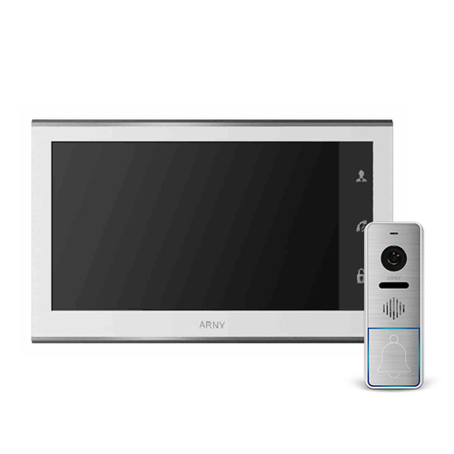 Комплект видеодомофона ARNY AVD-740 с панелью вызова ARNY AVP-NG420. Панель вызова имеет антивандальный корпус и расширенный угол обзора. Управление домофона сенсорное.