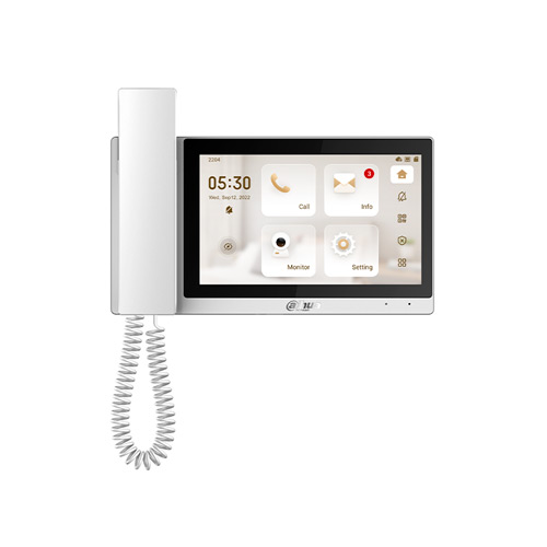 Комплект видеодомофона Dahua DHI-VTH5421EW-H + DHI-VTO2201F-P включает в себя 7-дюймовый сенсорный монитор с разрешением 1024×600, поддержкой Wi-Fi, Ethernet и SD карт до 32 Гб. Он имеет встроенные микрофон и динамик, а также функции контроля лифта и дверного замка. Вызывная панель DHI-VTO2201F-P оснащена 2-Мп CMOS-камерой с углом обзора 159°, поддерживает WDR, 3D NR и сжатие видео Н.265, обеспечивая отличное качество изображения при любом освещении.