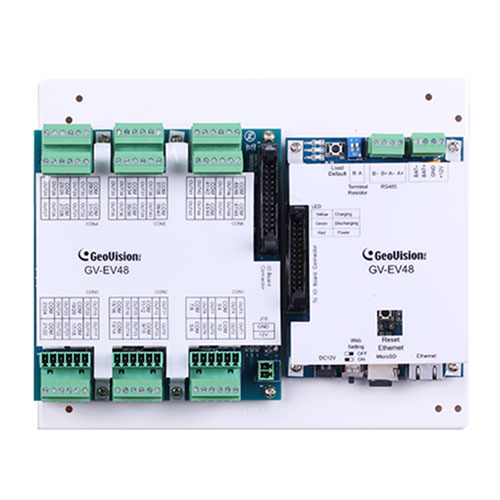 GV-EV48 - сетевой контроллер управления доступом к лифту. Может обслуживать не более 48 этажей. Позволяет подключить до 2-х считывателей GeoVision посредством интерфейса RS-485 или по сети. Имеет 48 релейных выходов.