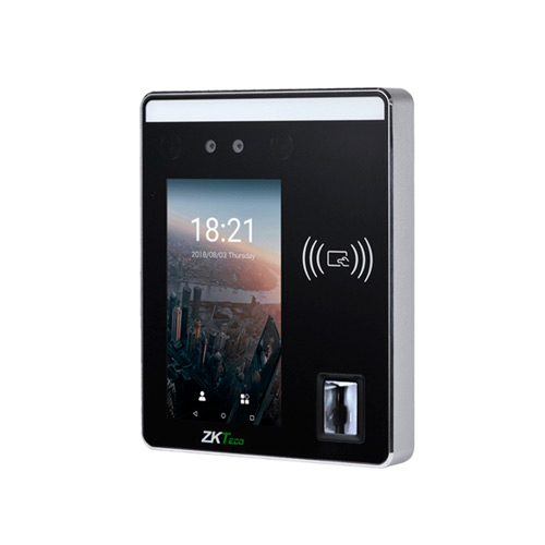SpeedFace-H5 - мульти биометрический терминал для идентификации пользователей по геометрии лица, отпечаткам пальцев и бесконтактной карте типа EM-Marine. Имеет 4-х ядерный процессор 1,8 Гц и 2 Гб ОЗУ. Оснащен цветным сенсорным 5" ЖК-дисплеем и 2 Мп камерой. Напряжение питания 12 В.