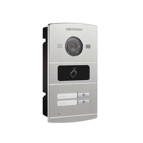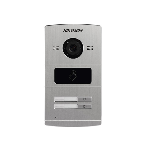 Врезная IP камера видеонаблюдения HIKVISION DS-KV8202-IM на два абонента со встроенным считывателем бесконтактных карт. Инфракрасная подсветка для работы при недостаточном освещении. Совместима с IP видеодомофонами HIKVISION.