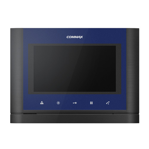 Видеодомофон (монитор) с 7-ми дюймовым цветным ЖК-экраном. Оснащен внутренней памятью, позволяющей записать до 50 снимков. Также поддерживает карты памяти microSDHC максимальной емкостью до 32-х Гб. Связь с абонентом hands-free (исполнение видеодомофона без трубки). Управление устройством сенсорное. Видеодомофон имеет встроенный детектор движения. Современный дизайн. Видеодомофоны commax производятся в Корее.