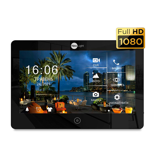 NeoLight Mezzo HD - цветной 4-х канальный монитор с поддержкой Full HD разрешения. Оснащен сенсорным 10,1 " IPS дисплеем. Поддерживает карты памяти microSD (до 128 Гб). Возможность записи видео по движению. Поддерживает ф-ции: "Авторамка", "Автоответчик". Встроенный блок питания.