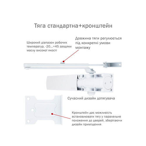 Тип дверного доводжувача | Класичний дверний доводжувач з ліктьовою тягою |