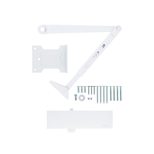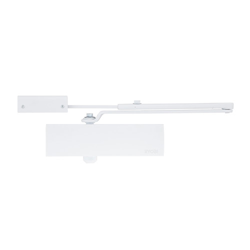 Дверний доводжувач RYOBI D-1200P(U) призначений для закривання внутрішніх та зовнішніх дверей. При цьому ширина дверного полотна має бути не більше 1100 мм і вага не перевищуватиме 80 кг. Робочий ресурс складає 500 тисяч циклів. Комплектується кронштейном паралельної тяги.