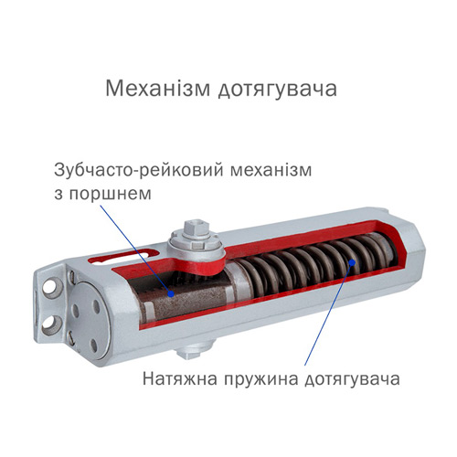 Тип дверного доводжувача | Доводжувач зі ковзним каналом |