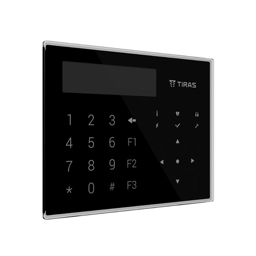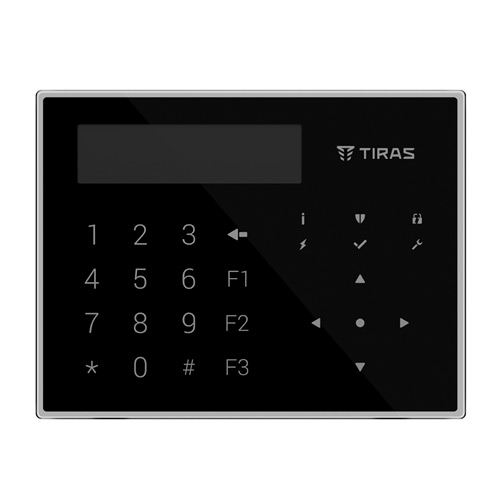 Сенсорна клавіатура з ультратонким дизайном, оснащена OLED-дисплеєм і загартованим склом, включає вбудований зчитувач NFC/Mifare, який забезпечує більш оперативне та зручне керування системою. У клавіатурі також передбачено три функціональні кнопки – F1, F2, F3, які можна налаштувати для швидкого доступу до керування певними виходами чи сценаріями.