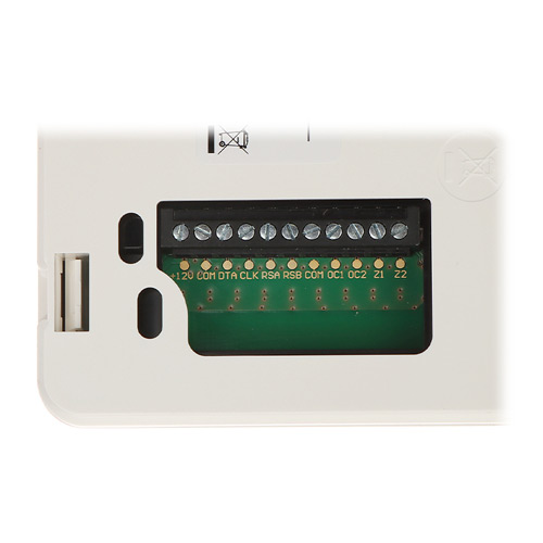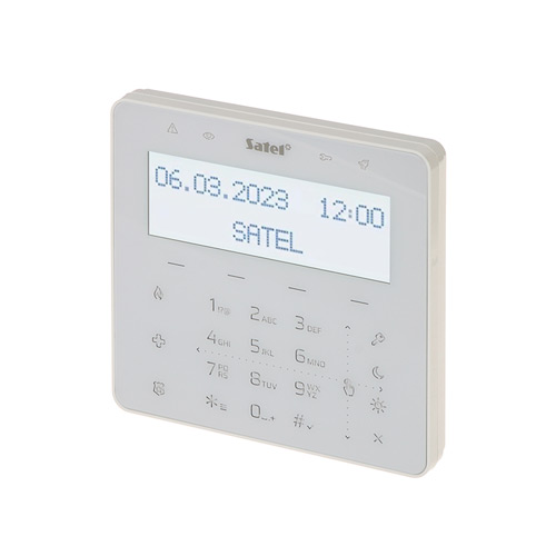 INT-KSG2R-W – клавіатура із сенсорними клавішами. Призначена для керування системою охоронної сигналізації на базі ППК серії INTEGRA, INTEGRA Plus, а також ПКП PERFECTA 64 M. Клавіші мають підсвічування. Дана модель оснащена вбудованим зчитувачем безконтактних карток (брелоків) типу MiFare.