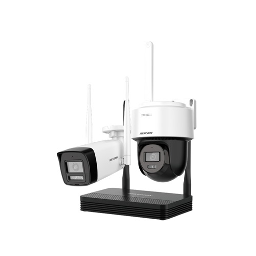 Бездротовий комплект з поворотною turret-камерою та швидкісною Speed Dome-камерою, обидві — 4 МП з об’єктивом 2.8 мм. Легке встановлення, зберігання відео на MicroSD (до 512 ГБ), віддалене керування через застосунок Hik-Connect. Двосторонній аудіозв’язок, нічне бачення та точне виявлення руху.