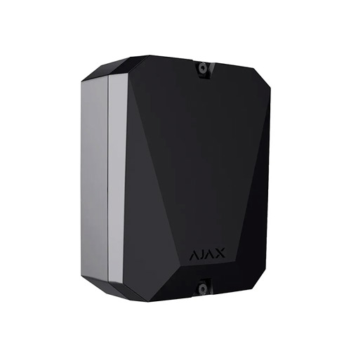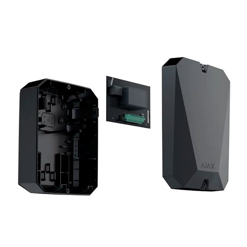 vhfBridge – модуль-транспондер у корпусі чорного кольору. Призначений для підключення сторонніх ОВЧ-передавачів із релейними входами до системи безпеки Ajax. У корпусі передбачено місце під акумулятор. Має 8 входів, що настроюються. Корпус має тамперний захист.