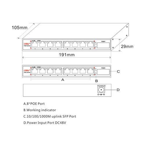 ONV-POE31008PF – некерований PoE-комутатор, розроблений компанією ONV. Має 8 х 10 | 100 M PoE портів та один оптичний порт (SC). Стандарт PoE – IEEE 802.3af | at, потужність одного порту PoE до 30 Вт. На передній панелі розташовані LED індикатори, що відображають статус живлення та портів пристрою. Купити за доступною ціною PoE комутатор ONV-POE31008PF можна у нашому інтернет-магазині Smartel.ua.