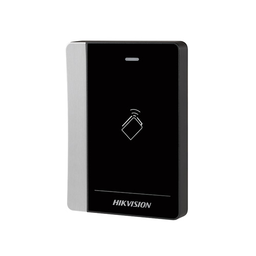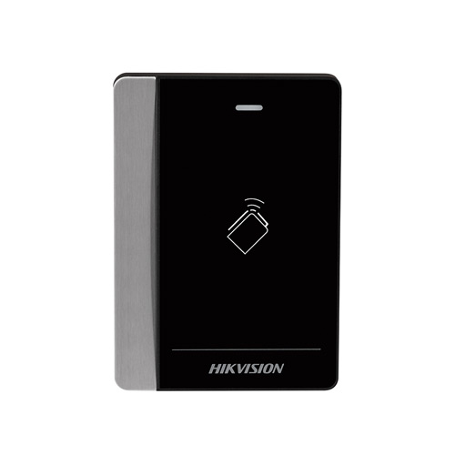 Зчитувач Hikvision DS-K1102M призначений для безконтактного зчитування даних із карт формату Mifare. Дальність зчитування становить 3-5 см. До контролера пристрій підключається через інтерфейси RS-485 або Wiegand. Корпус зчитувача зі ступенем захисту дозволяє установку пристрою зовні приміщення.