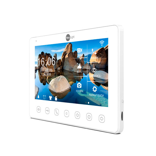 NeoLight Omega + HD WF – кольоровий 4-х канальний монітор із вбудованим модулем Wi-Fi. Обладнаний 7" дисплеєм з IPS матрицею. Управління за допомогою сенсорних кнопок з підсвічуванням. Спілкування з відвідувачем по гучномовному зв'язку. Вбудований блок пам'яті та підтримка зовнішніх карт пам'яті SD. Вбудований медіаплеєр.