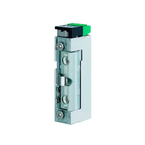 118RRE-A71 - електромеханічна засувка з контрольним контактом та механічним розблокуванням. Тип нормально закритий. Симетрична конструкція дозволяє встановлювати клямку на праві та ліві двері. Сила утримання до 3750 N.