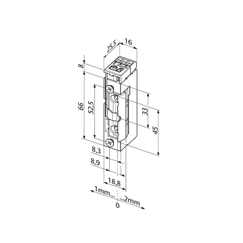 138RR-E91 - універсальна електромеханічна засувка нормально-відкритого типу. Має контакт положення ригеля. Сила утримання – до 375 кг. Номінальний опір котушки становить 51 Ом. Робочий ресурс – не менше 250 тис. циклів.
